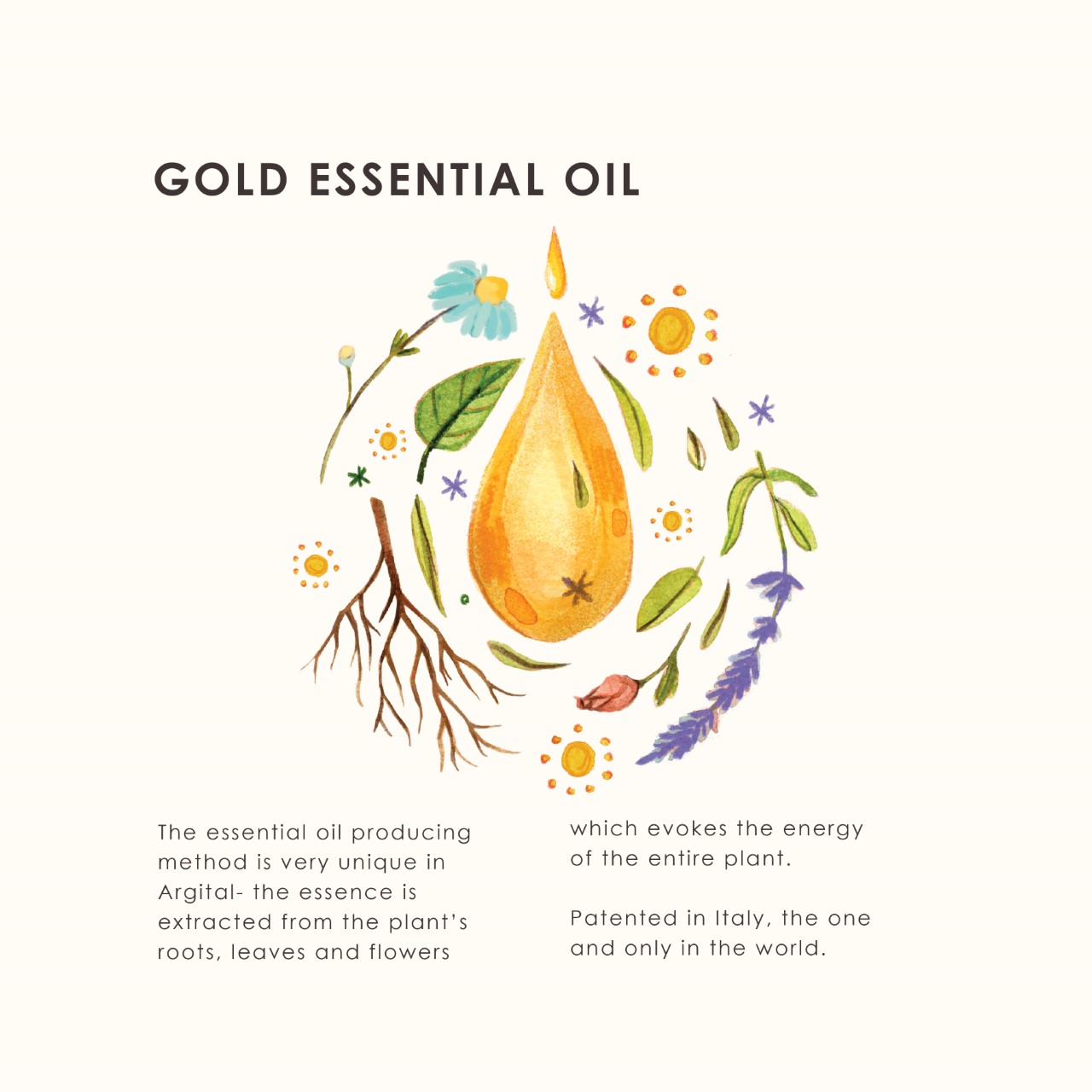 Argital’s exclusive GOLD essential oils are meticulously crafted using a patented Italian technique that harnesses the energy of the entire plant—flowers, leaves, and roots—ensuring their natural fragrance is beautifully preserved. This unique process creates soft, harmonious scents that nurture both the mind and skin.